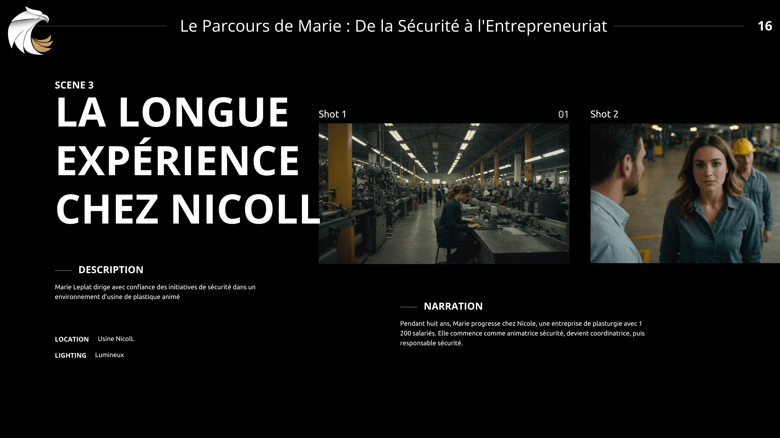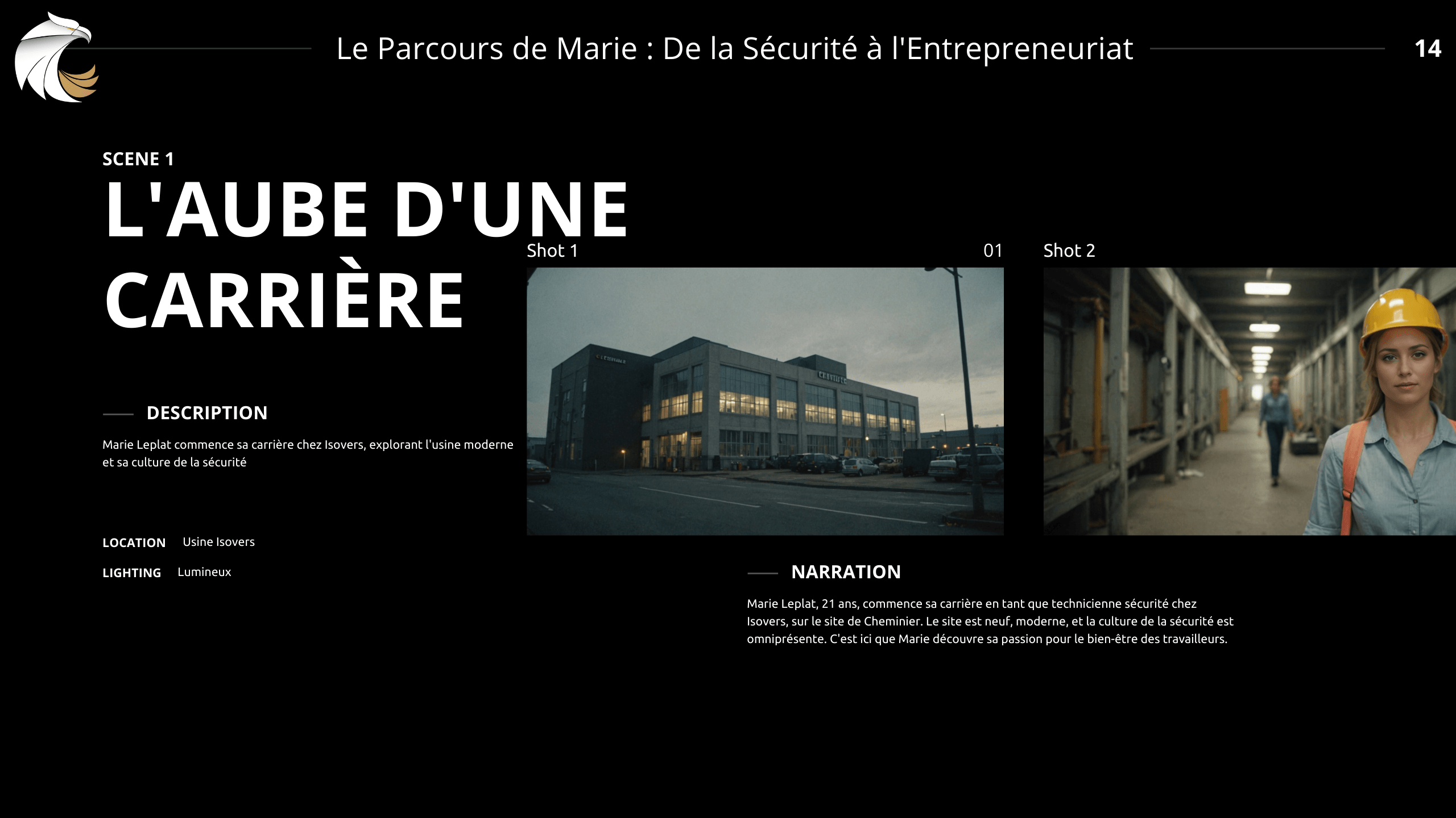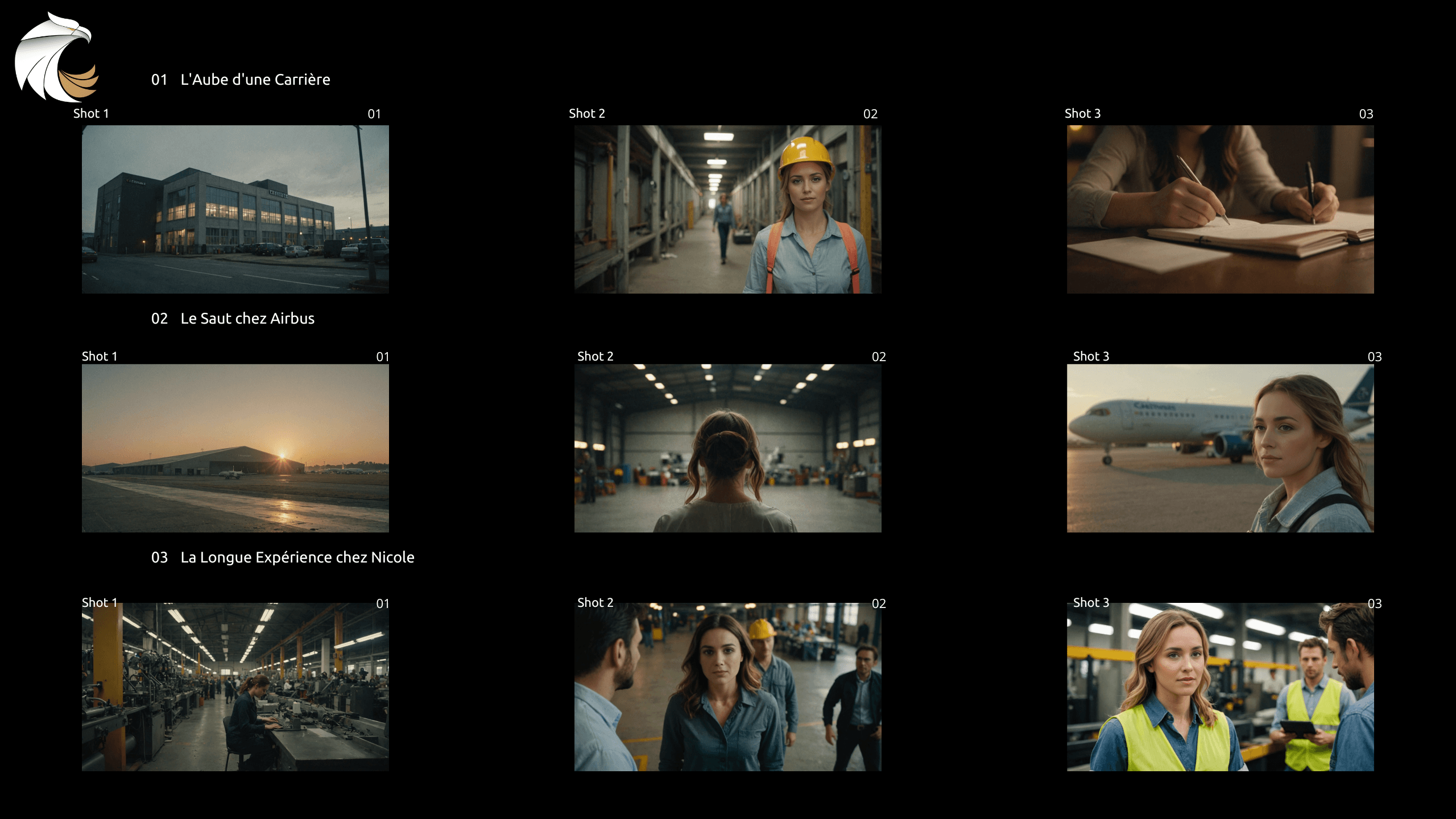Le storyboard est un outil essentiel pour toute production audiovisuelle. Il nous permet de visualiser le film avant même de commencer à tourner. Chez HELIATUS, nous créons des storyboards détaillés qui ressemblent à de véritables bandes dessinées, illustrant chaque plan et chaque mouvement de caméra. Cette visualisation est cruciale pour s’assurer que tout est prêt avant le jour J.